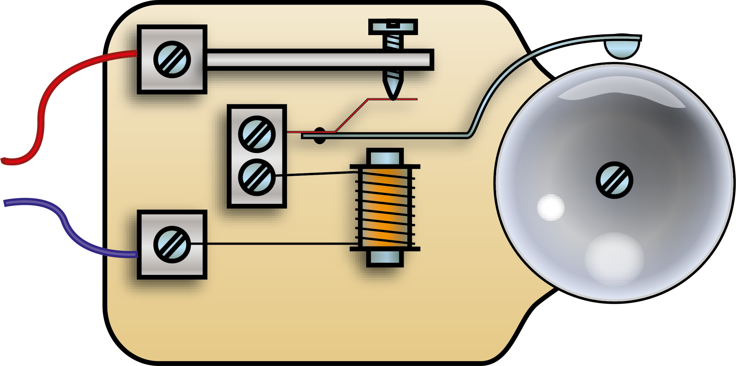 Eine elektromechanische Klingel geht nach dem Prinzip eines Wagnerschen Hammers, ein elektromechanischer Unterbrecher. Der Strom fließt über die Reihenschaltung aus Unterbrecherkontakt und Elektromagnet. Der Elektromagnet zieht den Klöppel an und unterbricht damit den Kontakt. Der Klöppel fällt durch Federkraft zurück und der Vorgang wiederholt sich. Die Justage von Klöppel und Federkontakt ist für den Klang der Glocke entscheidend.