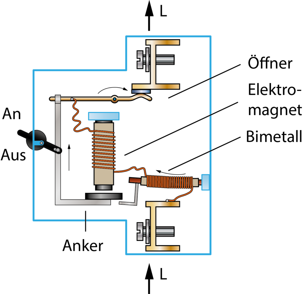 Ein dauerhafter Überstromfall erwärmt ein Bimetall, was auch zur Auslösung führt.